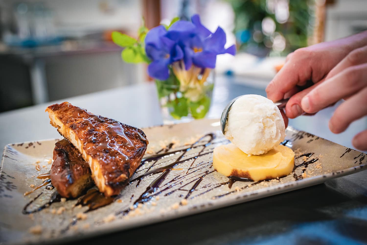 Du petit-déjeuner au dîner, dégustez une cuisine gourmande, délicieuse alliance de spécialités bretonnes et tahitiennes, concoctée par notre brigade.